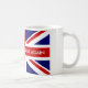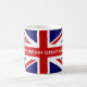 Custom British Union Jack flag coffee mugs. Make your own cup with personalized name, independence slogan, expression, monogram, parody, funny quote or saying. English pride patriotic design. Make Britain great again. UK United Kingdom, GB Great Britain. Also available as big oversized UnionJack mug or large travel to go mug for warm drinks like tea and chocolate milk. Fun political party drinkware gift idea for men and women. Politics humor.