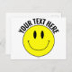 Make, Create, Design Your Own Custom Editable Slogan Yellow Smilie Postcard. Designed by SMILIEWEAR™.