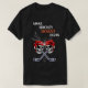My 11 yo wore adult XL (5’7” 165#). The 8yo is small framed. She wore adult small and tied it in the back. Grandma wore adult large with long sleeve shirt underneath. Tall girl adult medium. Dark haired male adult large. Good quality dark Heather gray, Gildan brand shirt. -it was next up from basic choice and cost about $20 per shirt. Not too thick or thin. Washed and dried well, no major shrinkage. Not see-through. Can wear a bra under it fine. Screen print is just as shown and well done, front and back.