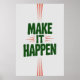 Fuel your ambition with this bold and empowering "Make It Happen" wall art print. Featuring strong green lettering and energetic red accent lines, this design commands attention and inspires action. Perfect for office spaces, home gyms, classrooms, or any environment where motivation is key, it serves as a daily reminder to take charge and turn dreams into reality.