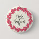 Hand-lettered make it happen pin with a floral red wreath.