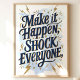 Ignite your ambition and defy expectations with this bold "Make it Happen, Shock Everyone" art print. Featuring vibrant typography and electrifying design elements, this motivational piece is a powerful reminder to pursue your dreams and achieve the extraordinary. Perfect for adding a spark of inspiration to your office, home gym, or creative workspace.