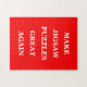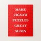 Jigsaw Puzzle hobby and decorative wall art decor printed with a Make America Great Again play on words and product names with white text on MAGA red background color style by TheFabricSeal print on demand shop at Zazzle.com #ZazzleMade https://www.zazzle.com/store/thefabricseal TheFabricSeal©️Original. This is a play on words from President Donald Trump's famous quote "Make America Great Again"
