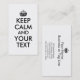 Make customized keep calm business cards for your self or business with this template. It has the keep calm crown logo in black and words in black letters. It says Keep Calm and Your Text.
