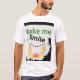 This unique t-shirt design features an artistic flower illustration paired with the uplifting phrase "make me smile." The vibrant floral elements and playful typography create a cheerful, eye-catching piece perfect for spreading positive vibes.