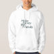 "make money not friends" with blue and black colors on a white hooded sweatshirt