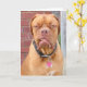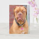 This is Santo. He is a Dogue de Bordeaux, aka French Mastiff. This is the same breed of dog as the one used in the movie, Turner and Hooch." But Santo is still a puppy. A very BIG puppy. He's really not a mean dude at all. He's actually very mellow. But sometimes he comes up with the most funny expressions. He's quite the entertainer!