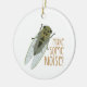 Lightweight, smooth, pure white ornament with nice sheen. Perfect size to be seen from across the room ... and to attract closer inspection! Price was great for ordering enough for the whole family! Clear, bold black design just as requested. Matches the order exactly. Just so nice!