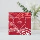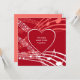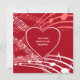 Stylish, contemporary personalized HEARTS AND MUSIC Valentine's Day Card, showing white and peach music staves against a rich red background, and a heart at the centre with CUSTOMIZABLE TEXT, which you can personalize with your name(s) and message. It currently says WE MAKE SWEET MUSIC TOGETHER. On the reverse, it says LOVE NEVER FAILS 1 CORINTHIANS 13:8 at the bottom, and there is a CUSTOMIZABLE GREETING. Both are customizable and can be replaced with your personal message. This would make a great card for VALENTINE'S DAY, but can also be customized for Anniversaries, Birthdays and 'Just Because' days. Matching gifts available