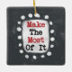 Bold text reading "Make The Most Of It" is centered against a gray background. The black text sits on a white rectangle with large textured white dots around it, providing a playful contrast against the solid color backdrop.