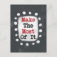 Bold text reading "Make The Most Of It" is centered against a gray background. The black text sits on a white rectangle with large textured white dots around it, providing a playful contrast against the solid color backdrop.