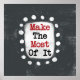Bold text reading "Make The Most Of It" is centered against a gray background. The black text sits on a white rectangle with large textured white dots around it, providing a playful contrast against the solid color backdrop.