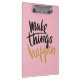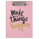 "Make Things Happen" - motivational quote in black and gold on pink background