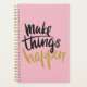 "Make Things Happen" - motivational quote in black and gold on pink background