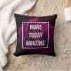 A pillow with the inspirational text: make today amazing. Designed with a photograph of a mysterious purple-pink gothic rose.