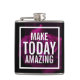 Flasks with the inspirational text: make today amazing. Designed with a photograph of a mysterious purple-pink gothic rose.