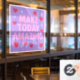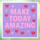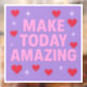 This window cling features a 3072 pixel square digital artwork with the motivational phrase MAKE TODAY AMAZING in the center. The text is in solid, pretty pink text using a sans-serif font. Each word is stacked vertically and evenly spaced. The background is a solid lavender color adorned with cute red hearts placed naturally. Glowing white sparkles with a starburst effect are in the background, adding a radiant and uplifting shimmer. The design is cheerful, cozy and polished — perfect for a professional window cling that inspires positivity and warmth. The window cling is a 3072 pixels by 3072 pixels window cling.