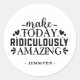 Enhance any surface with our Make Today Ridiculously Amazing Quote And Sayings Classic Round Sticker. This vibrant and stylish sticker is the perfect accessory to make your day extra special. With its eye-catching design and motivational message, it serves as a constant reminder to embrace every moment. Whether you stick it on your laptop, water bottle, or journal, this high-quality sticker is made to last. It also makes a thoughtful gift idea for someone who needs a little boost of positivity. What's more, you can personalize it by adding a custom name, making it a truly unique keepsake. Let this sticker inspire you and spread positivity wherever you go.