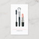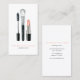 Elegant business cards design featuring a beautiful illustration of a make up brush, a lipstick and a mascara. Perfect for make up artists, cosmetologists, fashion designers, hair artists, moms on the go and much more!<br>
