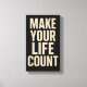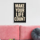 This bold and impactful design delivers a timeless message in a distressed, vintage-style font: “Make Your Life Count.” It's a rallying cry to live with intention, act with purpose, and leave a legacy. The minimalist vertical layout and rugged texture give it a raw, gritty appeal—perfect for those who value mindset, discipline, and meaning. Ideal for gym decor, personal development spaces, or anyone chasing significance over comfort.