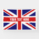 Make your own British Union Jack flag banner sign. Indoor and outdoor quality. Patriotic design with custom text template. Available in different sizes for inside and outside. Small medium and large shapes. With or without holes and hooks. Customizable background color. Add your text to the template. Great for national Holidays, Brexit, wedding, political party, gathering, reunion, BBQ, dinner party, event, business meetings, welcome home, politics etc. UK flag of United Kingdom, GB Great Britain, England.