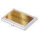 Make your own business card holder with cool metallic looking background image in a gold like color and text you can replace with whatever you want to put on the business card case.