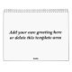 Create your own personalized calendar by uploading your own photos or art. For the cover as well as each month's photo area, simply replace the gray template with your own photo or artwork. Please note that there is also room for a custom message on the back of the calendar. **Personalize or delete that area prior to purchase **
