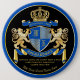 Create your very own aristocratic Coat of Arms, Emblem, Insignia or Family Crest with this beautiful, classic escutcheon or shield design. Cobalt Blue patterns decorate a shield topped with golden crown and flanked by medieval heraldic lion or griffin. A matching top banner holds your custom wedding date / birth date / slogan or battle cry. The shield has space for your monogram initials. Bottom banner carries your family name. There is also space below for your favorite quote, motto or message. Replace the sample text with your own for a personalized gift. A gender neutral design that will work for families, groups, couples or individuals. Makes a wonderful gift for Wedding, Anniversary, Birthday, Retirement, Promotion, Father’s Day, Bachelor Party, Wedding Shower, Graduation, International Heraldry Day, Medieval or Fantasy-themed parties and other special occasions.