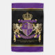 Create your very own aristocratic Coat of Arms, Emblem, Insignia or Family Crest with this beautiful, classic escutcheon or shield design. Royal purple patterns decorate a shield topped with golden crown and flanked by medieval heraldic lion or griffin. A matching top banner holds your custom wedding date / birth date / slogan or battle cry. The shield has space for your monogram initials. Bottom banner carries your family name. There is also space below for your favorite quote, motto or message. Replace the sample text with your own for a personalized gift. A gender neutral design that will work for families, groups, couples or individuals. Makes a wonderful gift for Wedding, Anniversary, Birthday, Retirement, Promotion, Father’s Day, Bachelor Party, Wedding Shower, Graduation, International Heraldry Day, Medieval or Fantasy-themed parties and other special occasions.
