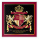 Create your very own aristocratic Coat of Arms, Emblem, Insignia or Family Crest with this beautiful, classic escutcheon or shield design. Crimson red patterns decorate a shield topped with golden crown and flanked by medieval heraldic lion or griffin. A matching top banner holds your custom wedding date / birth date / slogan or battle cry. The shield has space for your monogram initials. Bottom banner carries your family name. There is also space below for your favorite quote, motto or message. Replace the sample text with your own for a personalized gift. A gender neutral design that will work for families, groups, couples or individuals. Makes a wonderful gift for Wedding, Anniversary, Birthday, Retirement, Promotion, Father’s Day, Bachelor Party, Wedding Shower, Graduation, International Heraldry Day, Medieval or Fantasy-themed parties and other special occasions.