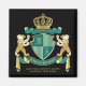Create your very own aristocratic Coat of Arms, Emblem, Insignia or Family Crest with this beautiful, classic escutcheon or shield design. Deep teal patterns decorate a shield topped with a golden crown and flanked by medieval heraldic bears. A matching top banner holds your custom wedding date / birth date / slogan or battle cry. The shield has space for your monogram initials. Bottom banner carries your family name. There is also space below for your favorite quote, motto or message. Replace the sample text with your own for a personalized gift. A gender neutral design that will work for families, groups, couples or individuals. Makes a wonderful gift for Wedding, Anniversary, Birthday, Retirement, Promotion, Father’s Day, Bachelor Party, Wedding Shower, Graduation, International Heraldry Day, Medieval or Fantasy-themed parties and other special occasions.