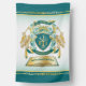 Create your very own aristocratic Coat of Arms, Emblem, Insignia or Family Crest with this beautiful, classic escutcheon or shield design featuring a magic tree, decorated by gold and jade mantling topped by golden crown studded with emerald, pearl and jade. A matching top banner in deep jade holds your custom wedding date / birth date / battle cry or other text. The shield flanked by eagles has space for your monogram initials. Bottom banner carries your family name. There is an antique book below for holding your favorite slogan, motto, message or inspirational quote. Replace the sample text with your own for a personalized gift. Makes a wonderful gift for Wedding, Anniversary, Birthday, Retirement, Promotion, Father’s or Mother’s Day, Book Club Inauguration, Wedding Shower, Graduation, International Heraldry Day, Medieval or Fantasy-themed parties and other special occasions.