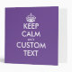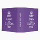 Make your own funny keep calm office binder. Personalized keep calm and carry on quote with crown. Purple or custom colors. Cool folder available in different thickness. Handy for photos, recipes, school, sports card collection and more. Cool Birthday gift idea for friends and family.