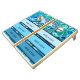 Add your own funny or drinking game rules to this cornhole set. Blue and Green bean bags game.