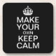 Make your own Keep Calm and Carry On coasters using our easy to customize template. All text can be changed, re-sized, moved or deleted. The background color can be changed from black to any color of your choice - match with your home decor.