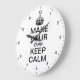 Make your own Keep Calm and Carry On wall clock for your home or office. Using our easy to customize template it is simple to changed, re-sized, move or delete any of the text. The white background color can be edited too - let your creativity flow!