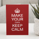 A template greeting card that you can use to easily make your own Keep Calm and Carry On Parody. All text can be changed, re-sized or deleted. The crown can also be edited. Shown with a red background. This can be changed to any color you like by pressing the 'customize it' button. Allows you to make a completely customized card. The inside of the card has been left blank for you to add your own message.