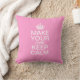 A throw pillow template in the style of Keep Calm and Carry On. The placeholder text states Make Your Own Keep Calm. Just edit the text in the boxes to the right of the picture and you can change the message to say anything you want. You're no longer limited to what you can find in the marketplace - your imagination is the only limit! Shown in pink the color can be customized by pressing 'Customize It' > Edit > Background.