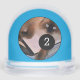 A great personalized holiday season snow globe decoration accent in sky blue. Two of your images to display or to share. Just upload your images using the numbered image fields you find on this product page. For best results, use images with a centered subject, your images will automatically be cropped in the square format you see on this product. We will gladly assist you with your design, email us from our designer store.