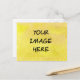 Make your own postcard. Use the "customize it" button, then upload images from your computer to replace the yellow "your image here" template. (jpg, png, gif, or tiff). Choose a background color. Next add some text. Choose your favorite text color, size and font. You may design on BOTH SIDES of the card. Click on the small images under the big image to move to design each side of the card.