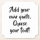 Make your own quote personalized square paper coaster! Choose from Zazzle fonts, text colors and size!
