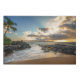 This photo features a beautiful sunset reflecting in the coastal tidal pools of Makena Cove, Maui. In the distant horizon you can see Kaho'olawe Island Reserve.