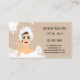 Business card featuring an illustration of a woman applying makeup. You can choose whether you prefer a brown or pink background in the advanced editor and in the layer panel open or close the eye of the image with the woman. Beautiful for a makeup artist, beauty salon or distributor of make up supplies.
