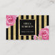 Makeup Artist Black & Gold Stripes Modern Floral Business Card