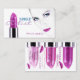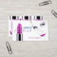 Makeup artist business card design with woman's face and shiny purple lipstick over white background. This stylish profile card is perfect for beauticians, cosmetologists, hair and makeup beauty salons and other similar professions. If you need any help with this design, feel free to contact me.