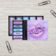 Makeup artist business card design with eye shadow palette over shiny violet heart background covered with glitter. This stylish profile card is perfect for beauticians, cosmetologists, hair and makeup beauty salons and other similar professions. If you need any help with this design, feel free to contact me. See also:
