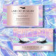 Platinum silver metallic faux foil glitter and a rainbow iridescent simulated holographic print liquid texture set the tone for this customizable business card template, featuring eyelids with a soft pastel opal glowing iridescent gradient texture eyeshadow and simulated quartz gemstones.