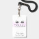 A modern makeup artist lashes business name badge featuring a pale pink blush tint with glamorous eyes and a trendy script typography. Promote your services at beauty conventions or salon open houses. Personalize with your name and business name. To see the full collection of matching products for this design visit: https://www.zazzle.com/collections/pink_blush_white_cloud_makeup_lash_beauty_service-119852917220787893