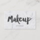 A modern, professional stylish makeup artist business card with modern hand lettering style brush typography in gray on a trendy and elegant white marble background.