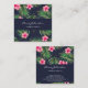 Makeup Artist Navy Green Fern Tropical Pink Flower Square Business Card